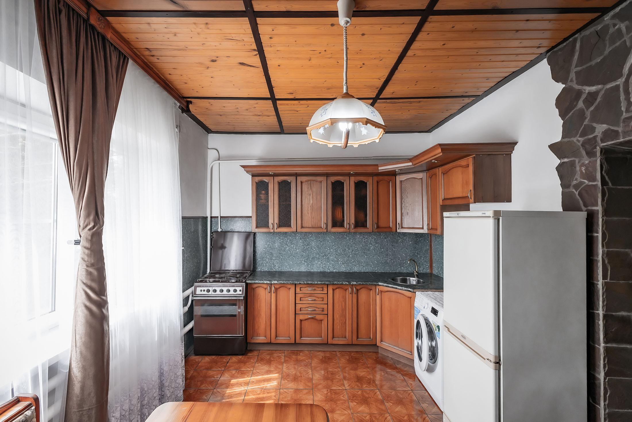 - Удобство: Кухня, оборудованная всем необходимым, включая современную бытовую технику и мебель.