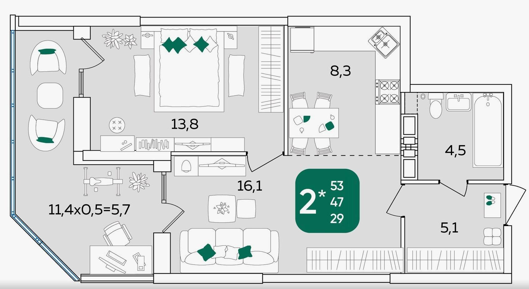 | Жилая площадь | 29 |